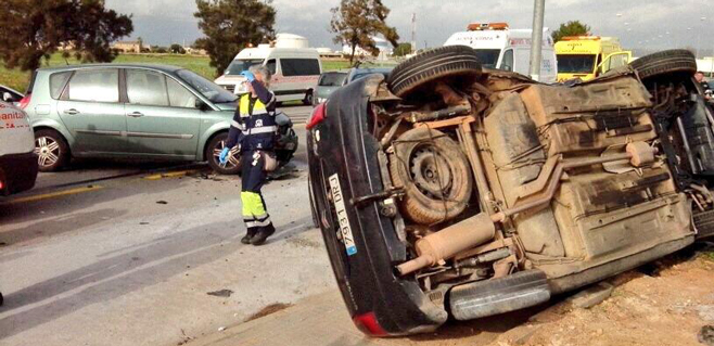 Un accidente múltiple ha tenido lugar esta tarde a la altura de la rotonda de acceso a Mercapalma, del que no hay heridos y tan sólo daños materiales de los vehículos implicados.