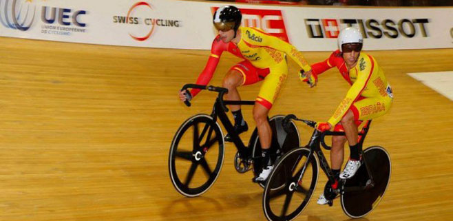 El menorquín Albert Torres, junto a Sebastián Mora, lograron este domingo la medalla de oro en la prueba de Madison de los Campeonatos de Europa de ciclismo en pista, disputados en la ciudad suiza de Grenchen.