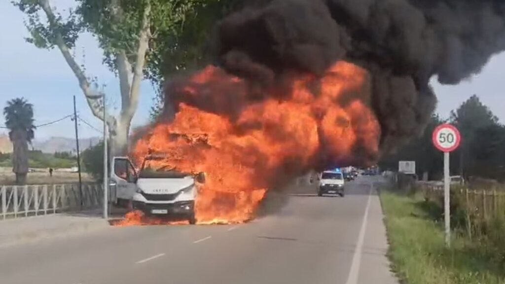 Los bomberos han conseguido apagar las llamas, pero el camión ha quedado totalmente calcinado; la Policía Local ha acudido a la zona para cortar el tráfico hasta que retiren los restos del vehículo.