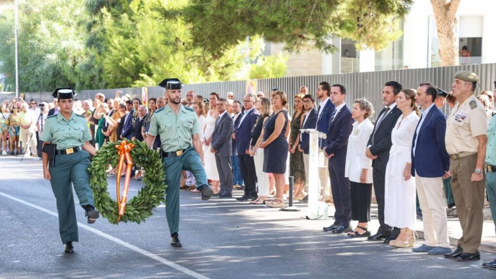 Una vez finalizadas las palabras del alcalde, se ha reproducido el himno 'La muerte no es el final', se ha colocado una ofrenda floral en el monolito en honor a los guardias civiles asesinados y se ha escuchado el himno de la Guardia Civil.