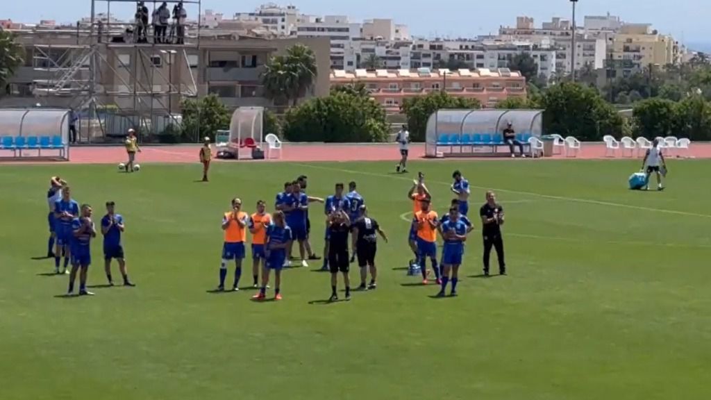 Sabedores de que dependían de ellos mismos para lograr la permanencia en la Segunda RFEF, el conjunto entrenado por José Contreras ha contado con el apoyo de una nutrida representación de aficionados desplazados desde la isla. En el minuto 8, la parroquia andritxola se ha llevado un buen susto cuando un disparo de Marquitos ha sido rechazado por el larguero.