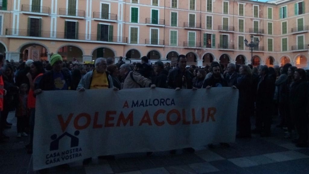 Los manifestantes han mostrado pancartas con lemas como 'A Mallorca volem acollir', '#Welcome refugees', 'Las políticas de cierre de fronteras son asesinas' o 'Mallorca, terra d'acolliment', entre otros.