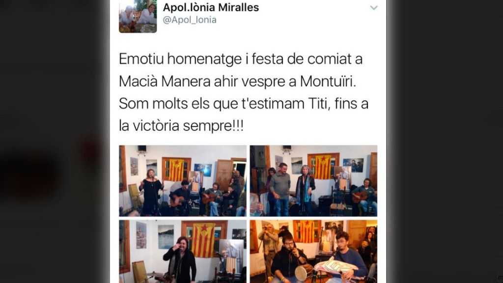 La Fundación Círculo Balear (FNCB) ha denunciado este jueves la participación de la consellera "electa" del Consell de Mallorca, Apolonia Miralles, de la formación Més, en el homenaje celebrado días atrás al fallecido activista independentista mallorquín Macià Manera. "En las democracias serias si un cargo público homenajea a un terrorista, además de causar repugnancia, es inhabilitado para su cargo", ha señalado el presidente de esta agrupación, Jorge Campos, por medio de un comunicado