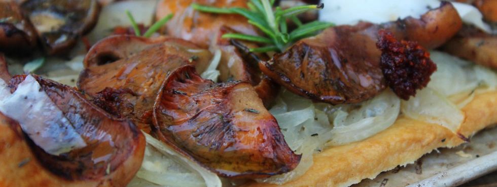 Dicho esto, en esta receta nos proponemos disfrutar el doble y hemos casado las setas con la sobrasada en un conjunto que resulta exquisito y que combina perfectamente, sobre una base de pasta crujiente, una cama de cebolla con aroma a tomillo, porque las setas saben a monte, y lo hemos rematado con unas lonchas casi transparentes de un queso de cabra mallorquín semi y unas ramitas de romero para darle un toque decorativo y con sabor a otoño inconfundible. Bon profit!!!