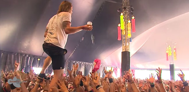 El caso es que durante un concierto, decidió bajar del escenario hacia los fans agolpados, pero lo hizo andando sobre las manos de estos. Si ya de por sí mantenerse erguido en equilibrio sobre el esfuerzo de los brazos de los fans ya es complicado, desde el fondo de la sala sale volando un vaso, que el cantante coge al vuelo y sin dudarlo se lleva a la boca para beberse el contenido. Sin inmutarse.