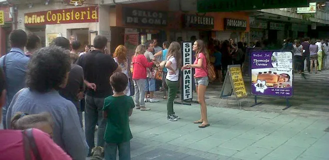 Los simpatizantes con los docentes ante la inminente huelga indefinida que se debe iniciar este lunes, así como los mismos profesores, han acudido en multitud para poder comprar una de las camisetas que se han puesto a la venta con el lema ya utilizado de "Crida no al TIL".