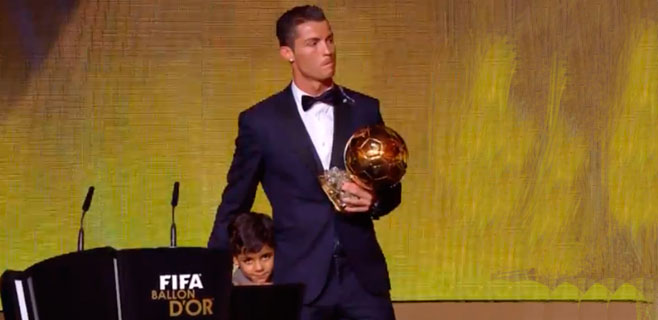 El jugador portugués del Real Madrid Cristiano Ronaldo ha conquistado el FIFA Balón de Oro, en la gala anual que el máximo organismo del fútbol mundial ha organizado en Palacio de Congresos de Zúrich (Suiza), tras imponerse a los otros dos nominados, el argentino Leo Messi y el alemán Manuel Neuer. Es el tercer FIFA Balón de Oro que gana en su carrera vez en su carrera, tras los que alcanzó en el año 2008 y en 2013. Su hijo ha subido al escenario tras las palabras de CR7 y ha posado junto a él durante unos segundos.