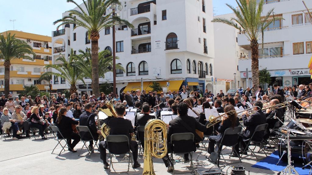 En la plaza de España, ante decenas de personas y bajo la dirección de Jaume Manuel, la Banda Municipal de Música de Santa Eulària des Riu ha ofrecido un concierto al cual ha interpretado algunas de las piezas que ya sonaron en febrero al Palacio de Congresos dentro de las fiestas de Santa Eulària. El público asistente ha podido deleitarse con ‘Música y pueblo’ de Ferrer Ferran o ‘Ross *Roy’, de Jacob de Haan así como algunos de los temas que ofrecerán en la visita que harán a Algaida (Mallorca) el próximo mes, 'Lady Gaga’, con arreglos de T. Ricketts; o ‘Adele in Concert’ en la versión de M. Brown.