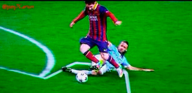 Sigue viva la polémica alrededor del primer gol del Barça este martes ante el Manchester City en partido de Champions League. Más o menos todo el mundo está de acuerdo en que Messi arranca en posición correcta, en que el defensor intercepta ilegalmente la carrera de Messi y en que, por tanto, fue justa la expulsión.