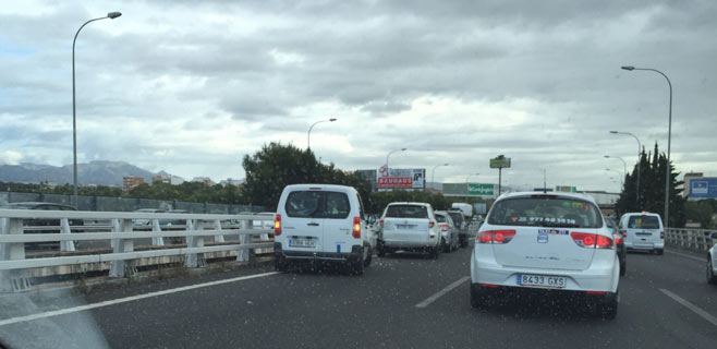 A todo esto hay que añadir que la mañana tiene aspecto lluvioso y que el asfalto está mojado tras las precipitaciones de esta madrugada.