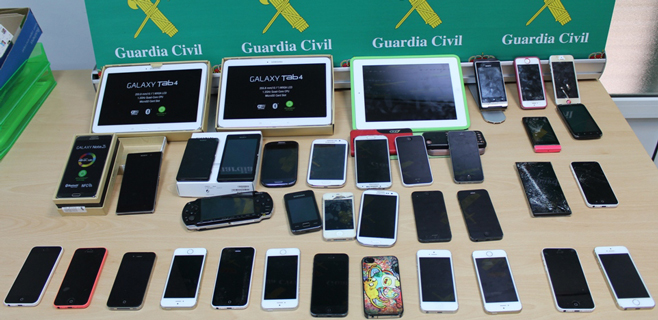 En un primer registro se localizaron varios objetos robados, y ya en dependencias oficiales de la Guardia Civil, se hallaron gran cantidad de aparatos electrónicos sustraídos, con cerca de 40 teléfonos móviles de alta gama y numerosas herramientas.