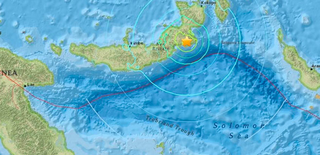 El epicentro de ambos seísmos se registró a 128 kilómetros al sur-suroeste de Rabaul, con un hipocentro situado una profundidad de 61 kilómetros.
