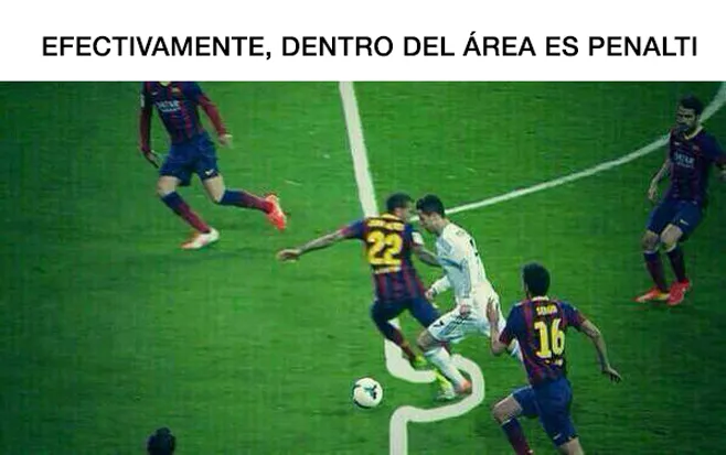 Tal y como pasó con el penalti señalado a favor del Barça contra el Manchester City en la liga de Campeones, ya han aparecido imágenes que demuestran que dentro del área, siempre es penalti.