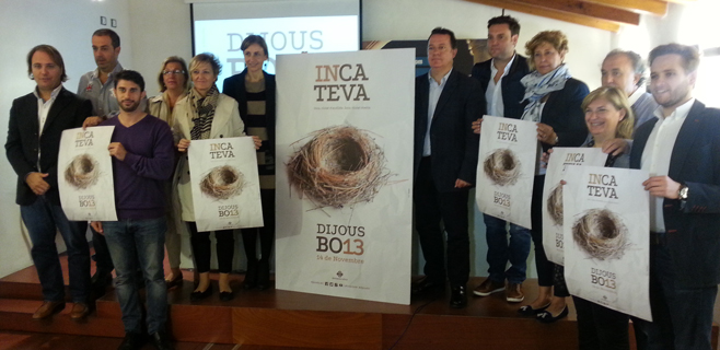 http://youtu.be/TeHQz_PJaC8 El Dijous Bo d'Inca ya está en marcha. Este miércoles el Ayuntamiento ha presentado oficialmente la imagen final para la edición de 2013, así como el spot de televisión que promocionará esta nueva edición de la mayor Fira de Mallorca. El próximo día 14 de noviembre se llevará a cabo esta nueva edición, bajo el lema de "Inca ciutat d'acollida. Inca ciutat oberta". Bajo este lema se ha presentado el cartel que por quinto año consecutivo, se ha elegido por concurso. El ganador ha sido José Antonio Vidal, que ha participado en la presentación junto al alcalde Rafel Torres y los concejales del Ayuntamiento. Además se ha presentado el spot oficial que ya se puede ver por internet, que ilustra esta noticia, y a través de las diferentes redes sociales con presencia del ayuntamiento. Torres ha destacado que el vídeo se ha realizado "con recursos limitados pero con el mensaje muy claro y con mucha ilusión" . El spot convierte a una quincena de niños en protagonistas invitando a todos los presentes en la feria de ferias vestidos con diferentes oficios que significan todo lo que es Inca . Según Torres " refleja el espíritu y la esencia del Dijous Bo " .