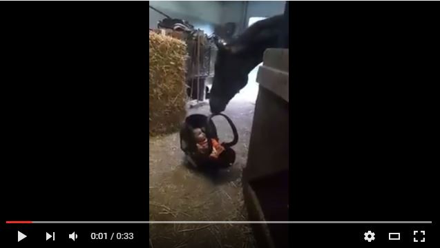 En un vídeo publicado en la página de Facebook francesa EQUIDIA, una yegua alargó su cuello y con su cabeza comenzó a mecer el capazo donde se encontraba un bebé. El gesto no sólo lo repitió una sola vez. Cada vez que el balanceo cesaba, el animal volvía a acerca su hocico para reanudar el movimiento que parecía calmar al pequeño.