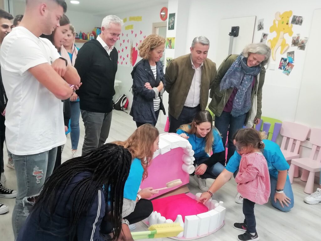El alumnado de los Ciclos de Formación Profesional de Higiene Bucodental, Dietética, Técnico en Farmacia y Auxiliar de Enfermería ofrecieron a los más pequeños cajas llenas de puzles de frutas y verduras, bocas gigantes y cepillos de dientes, canciones, botiquines, y fichas didácticas sobre alimentación y hábitos de higiene para inculcarles a los más pequeños consejos para que aprendan como lavarse los dientes correctamente, lo importante qué es comer frutas y verduras, que las chuches y las tartas son sólo de vez en cuando, que es muy bueno hacer mucho ejercicio o cómo hay que lavarse las manos correctamente… y así entre un montón de consejos y prácticas para cumplir ese dicho de “más vale prevenir que curar”.