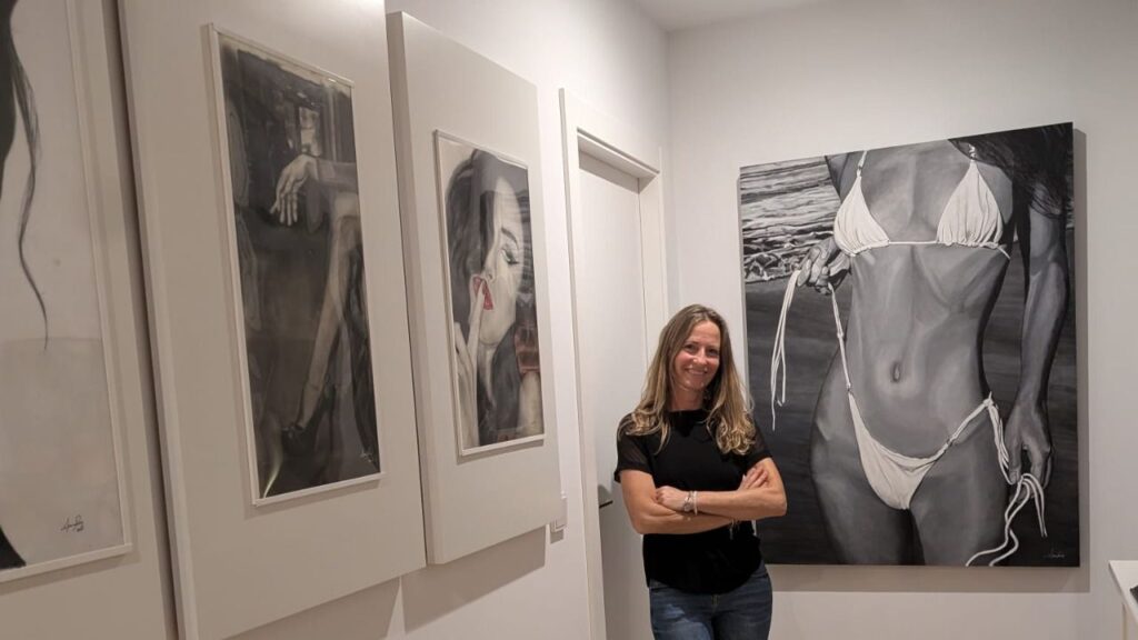 La pintura ha sido mi terapia, a veces mi salvavidas. Antes tenía la sensación de que alguien escribía por mí, como si me dictase, y con la pintura me ocurre lo mismo. Me siento cómoda con el uso del acrílico y desde que comencé, trabajo con los colores primarios. Experimento con cualquier técnica y en la actualidad con trabajos de digitalización. Me atrae la figura femenina y es recurrente en muchas de mis pinturas.