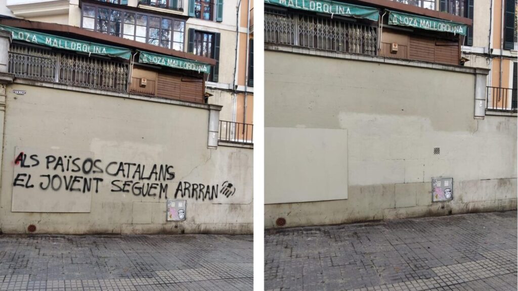 Antes y después de la eliminación de pintadas en Palma