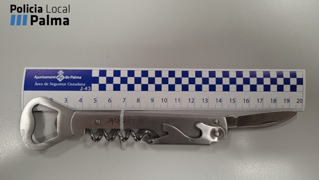 A su llegada al lugar, los clientes señalaron al autor de los hechos, que en ese momento se encontraba en la calzada. Al ser interpelado por los policías, el hombre no respondió a ninguna pregunta y mostró una actitud de nula colaboración. Durante el registro preventivo, los agentes le hallaron un sacacorchos con una hoja cortacápsulas de cinco centímetros.