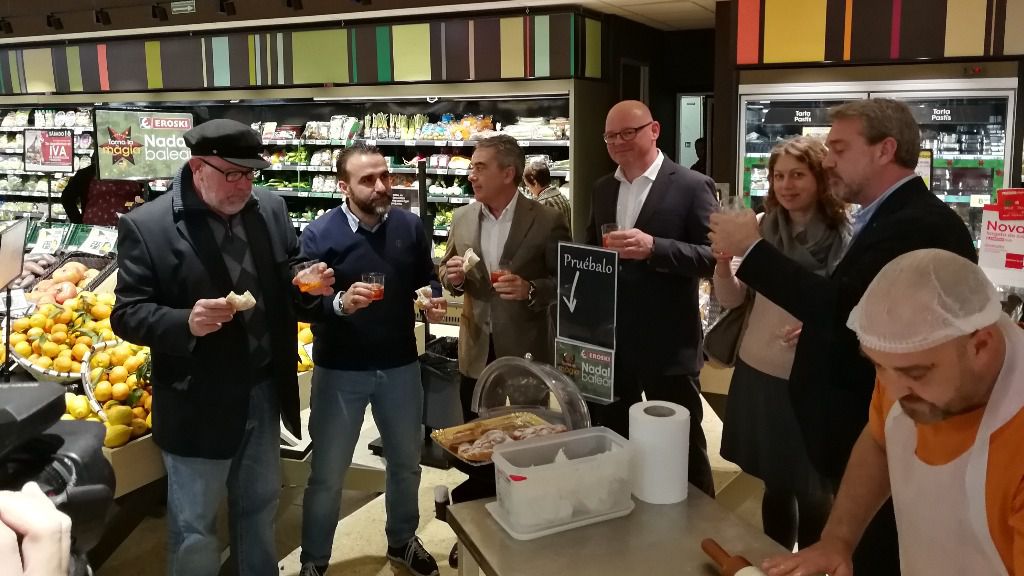 Eroski apuesta un año más en la campaña de Navidad por el producto local. El pasado año, los productos de Balears típicos de estas fechas que se encuentran en Eroski alcanzaron unas ventas de más de 2,36 millones de euros, lo que ha supuesto un incremento del 12,36% en dicha gama. Los más consumidos fueron los dulces navideños con más de 120.000 unidades vendidas. Los vinos y cavas también tuvieron buenos resultados con más de 55.800 unidades, un incremento del 39,5% sobre el año anterior. Otro producto muy típico de las islas que también tuvo una buena acogida fueron las cocas de anís y de patata con casi 12.000 unidades vendidas en conjunto. También cabe destacar la ensaimada, realizada de manera tradicional con unas ventas de más de 15.000 unidades en los días claves de nuestras fiestas.