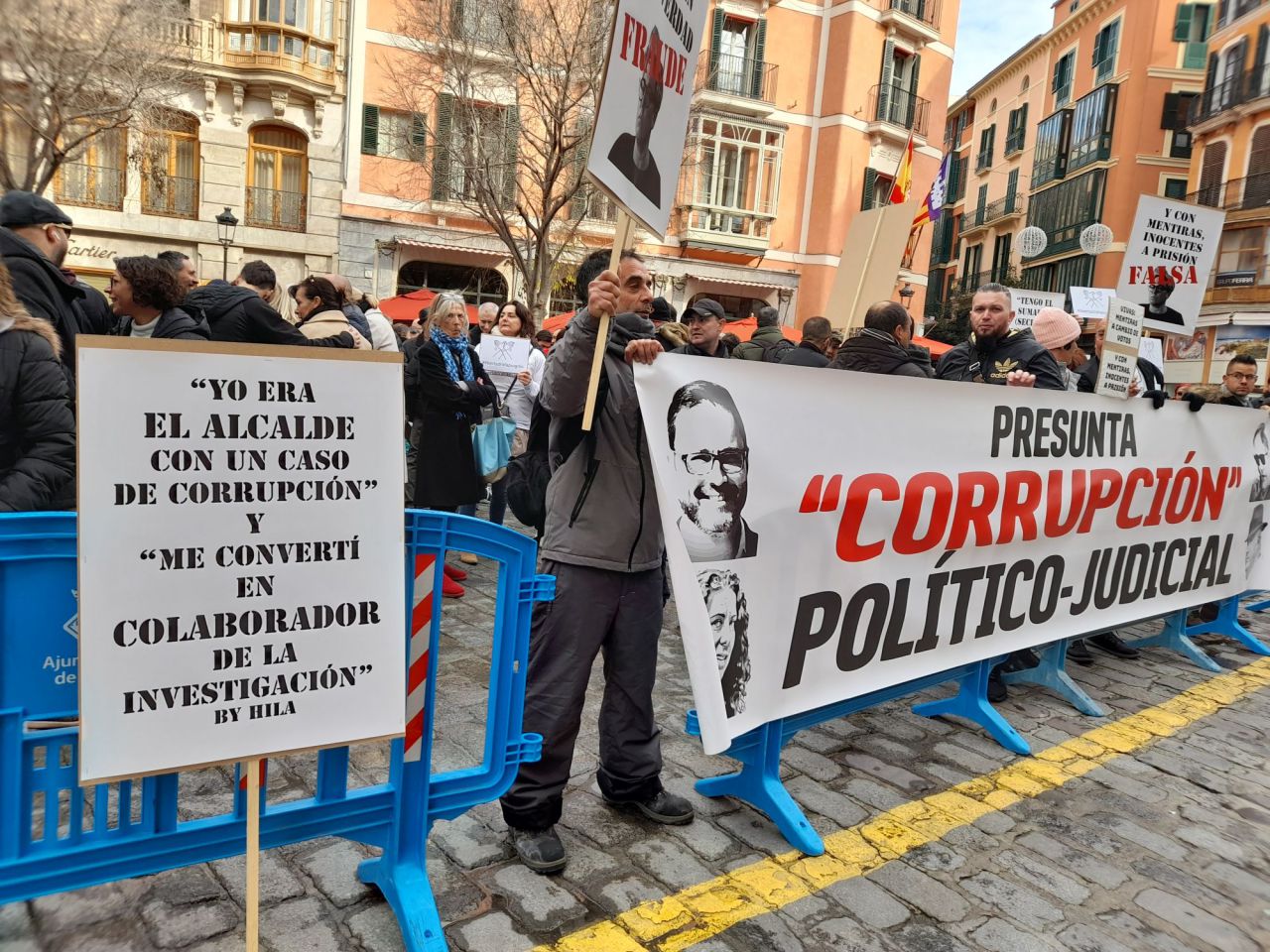 Afectados por la instrucción del caso Cursach se manifiestan en Palma para exigir la dimisión del alcalde, José Hila, y la entonces regidora de Seguridad Ciudadana, Angélica Pastor