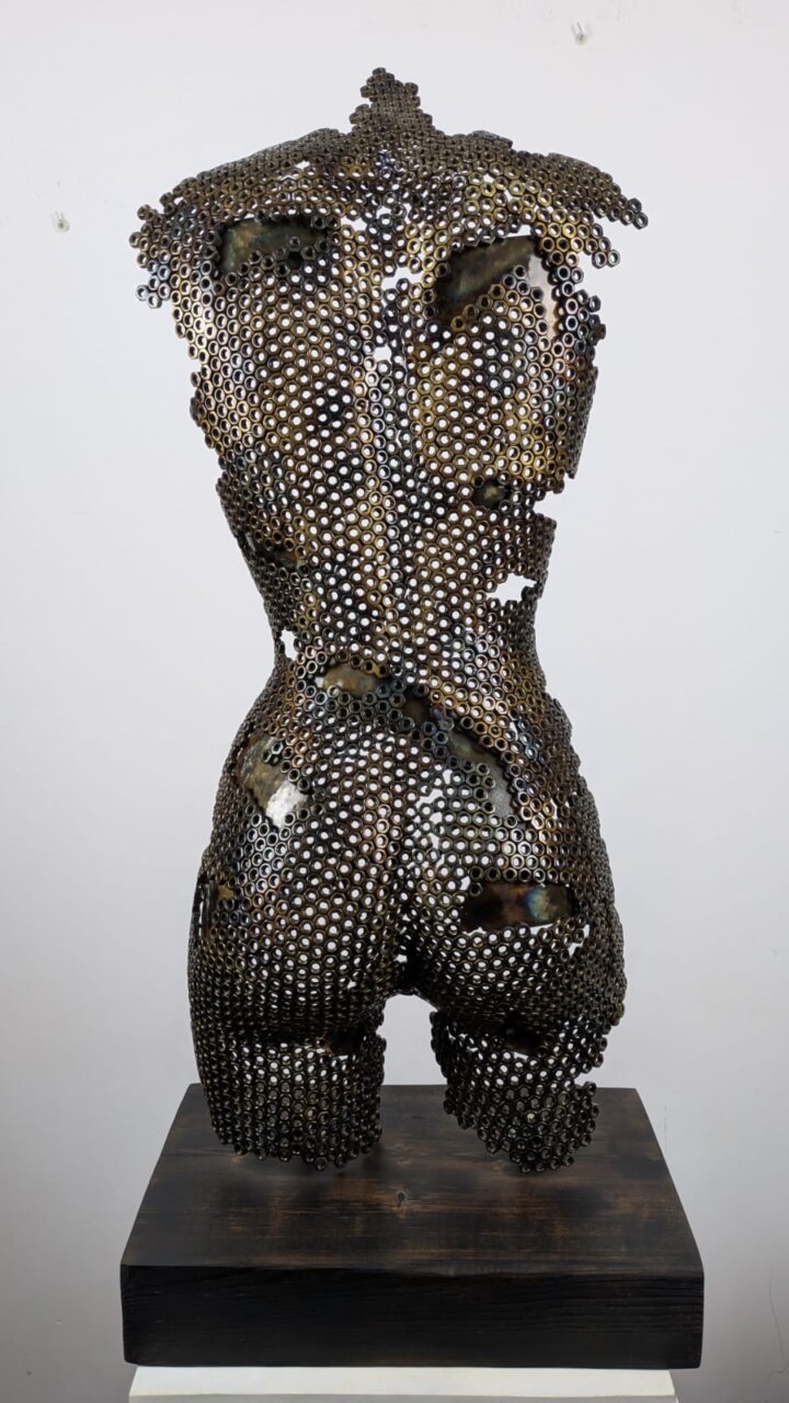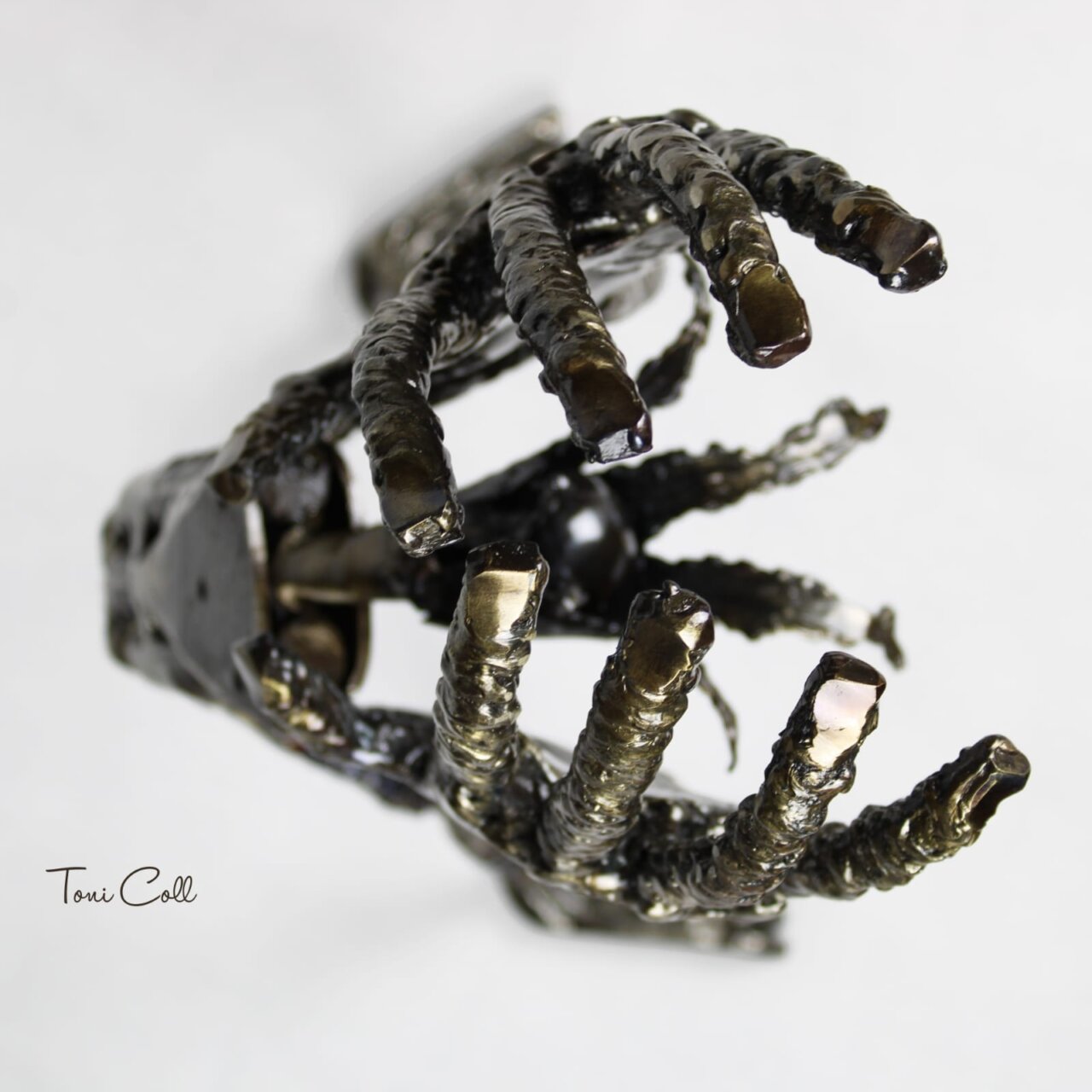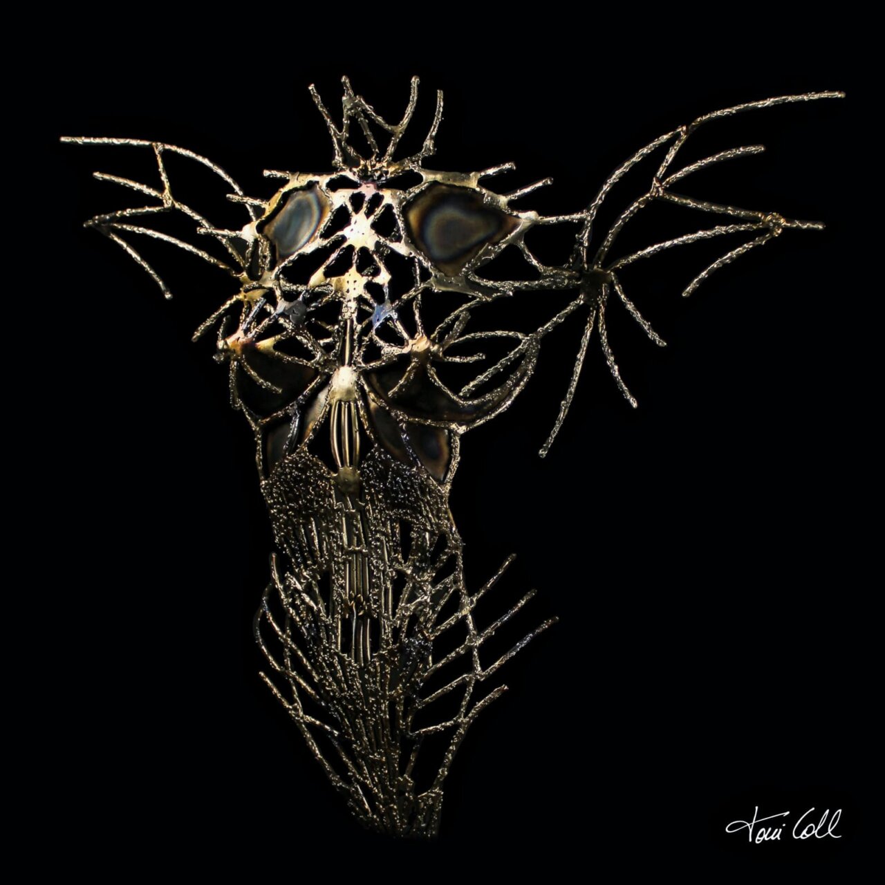 Obra de arte del escultor Toni Coll, destacando su estilo único en metal.