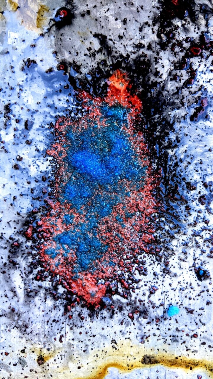 Una obra abstracta que destaca por su textura y colorido.