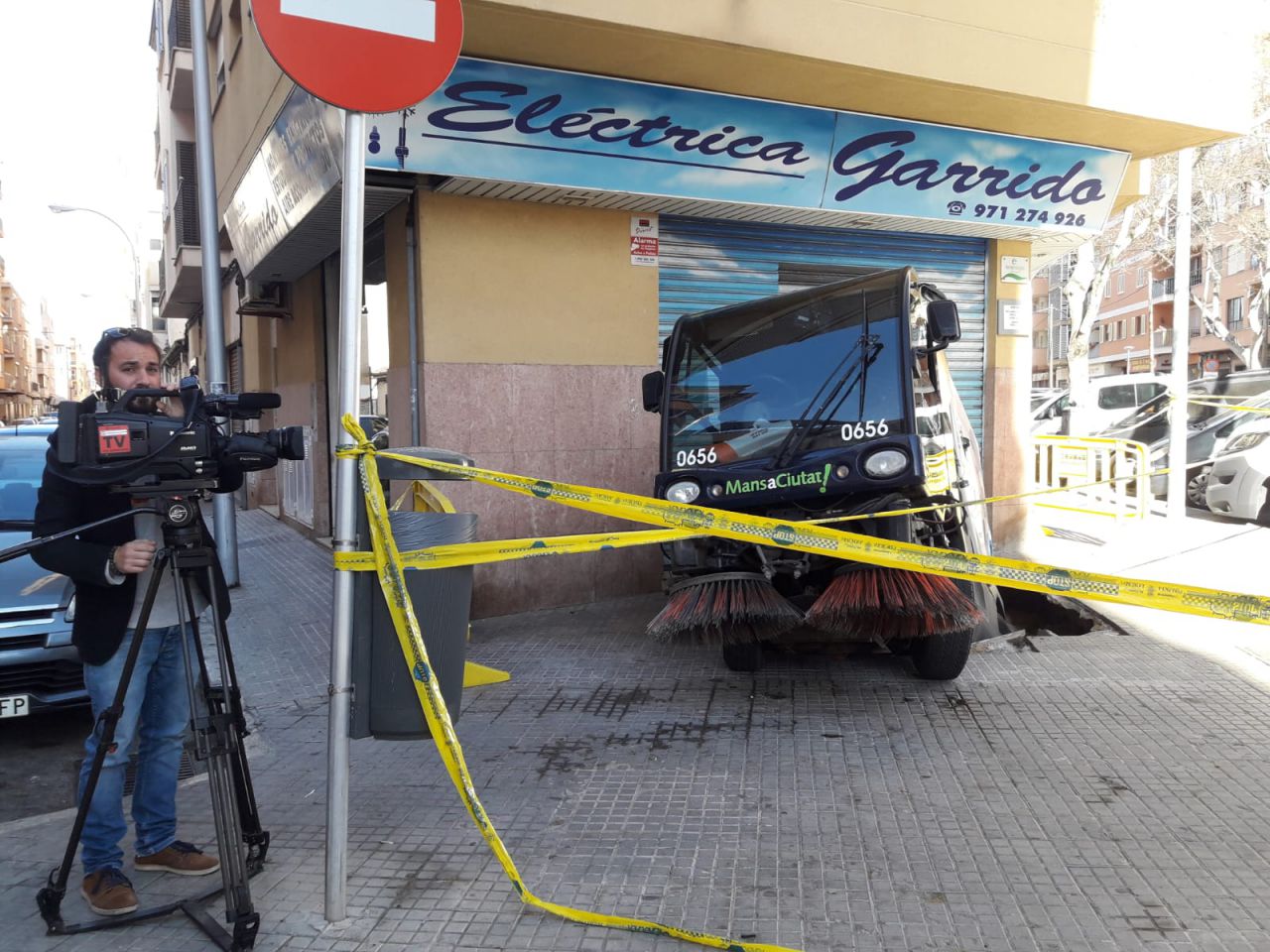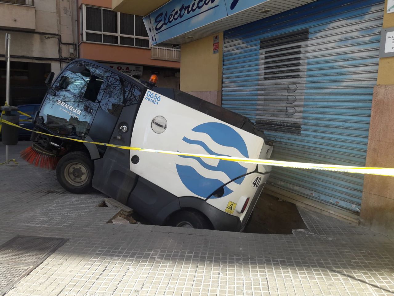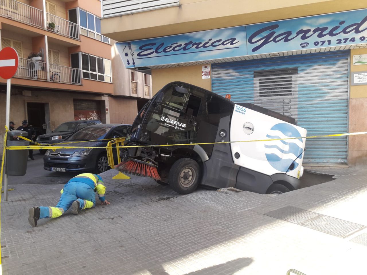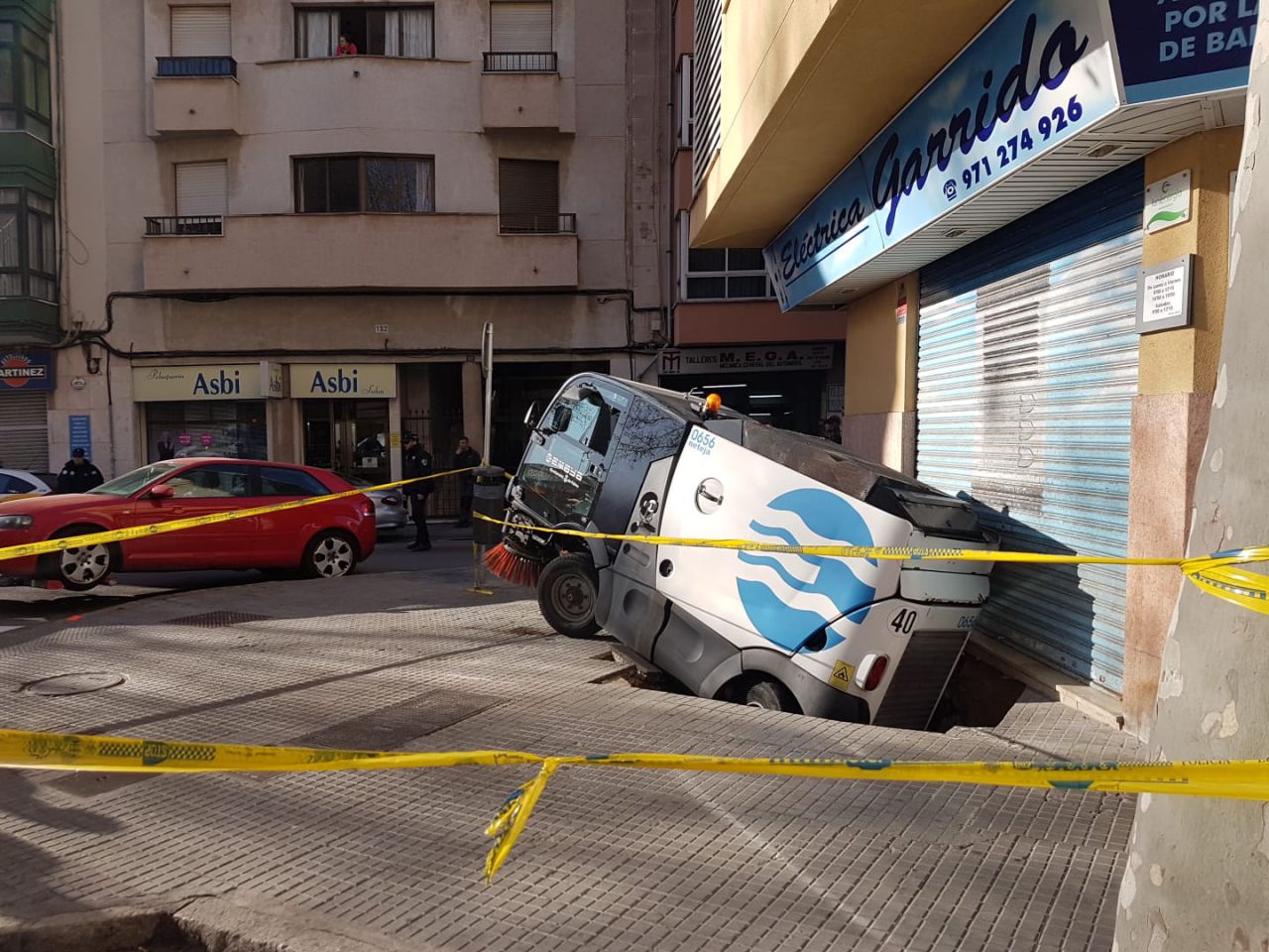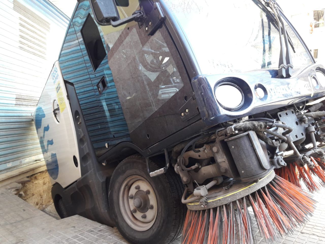 Vehículo de Emaya metido en un socavón