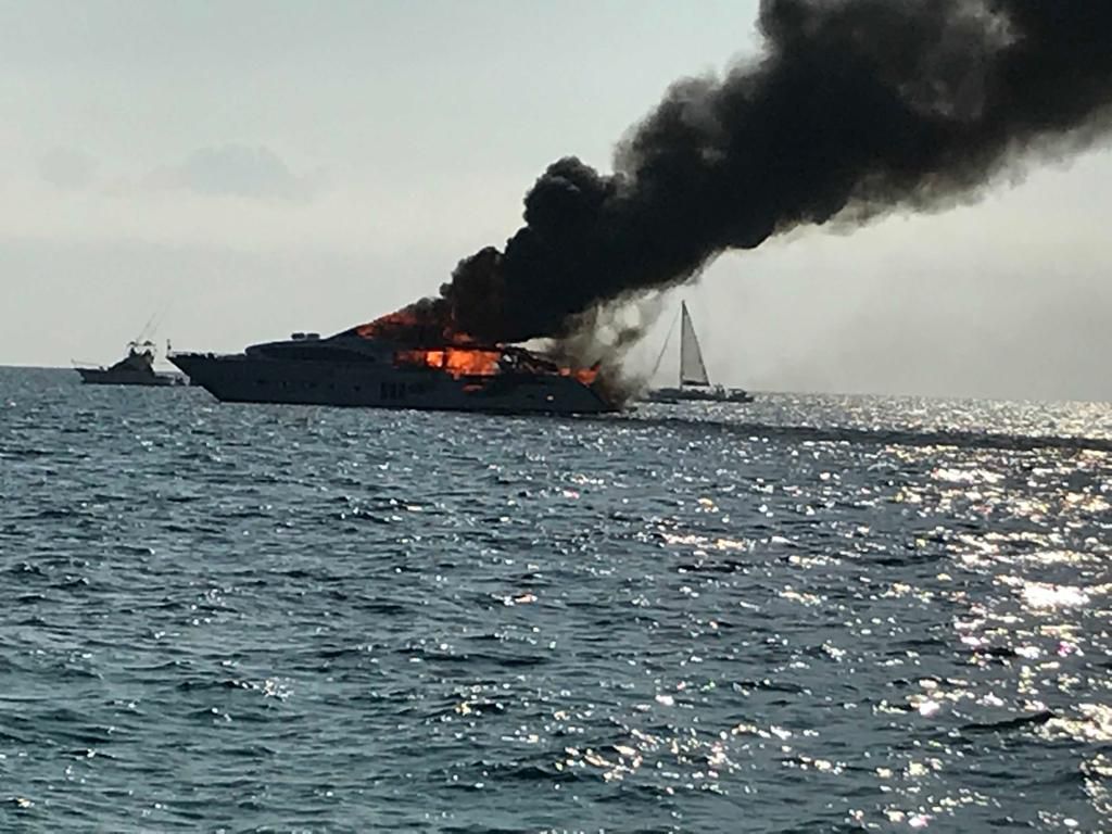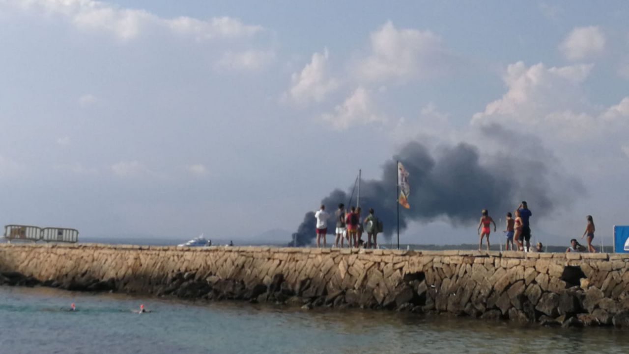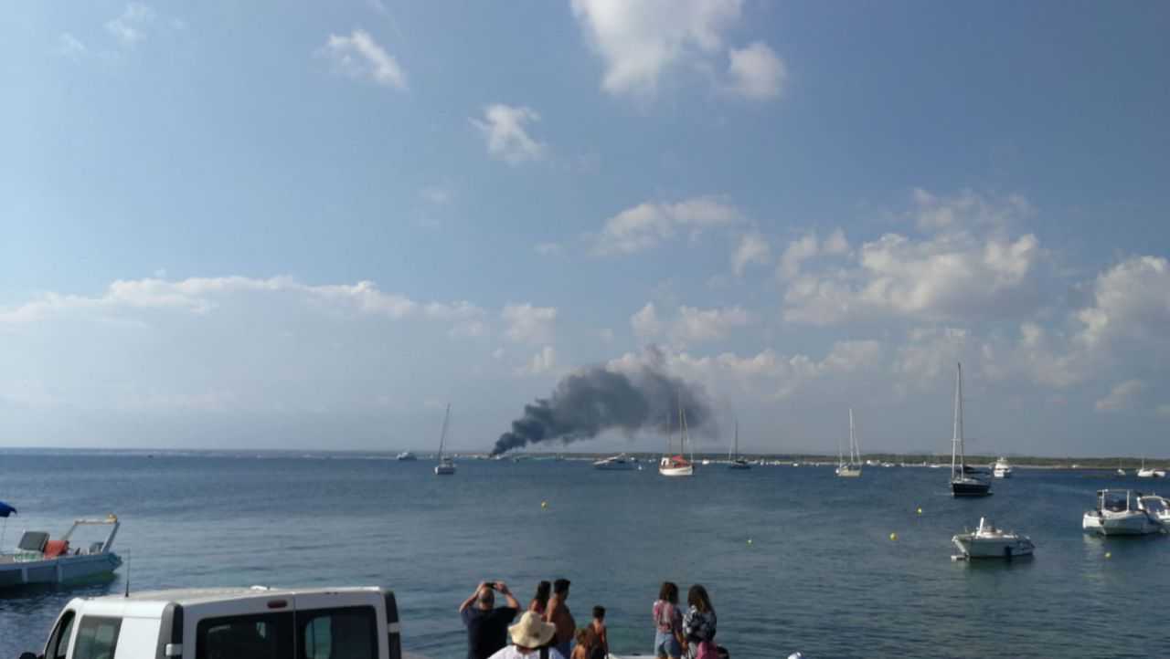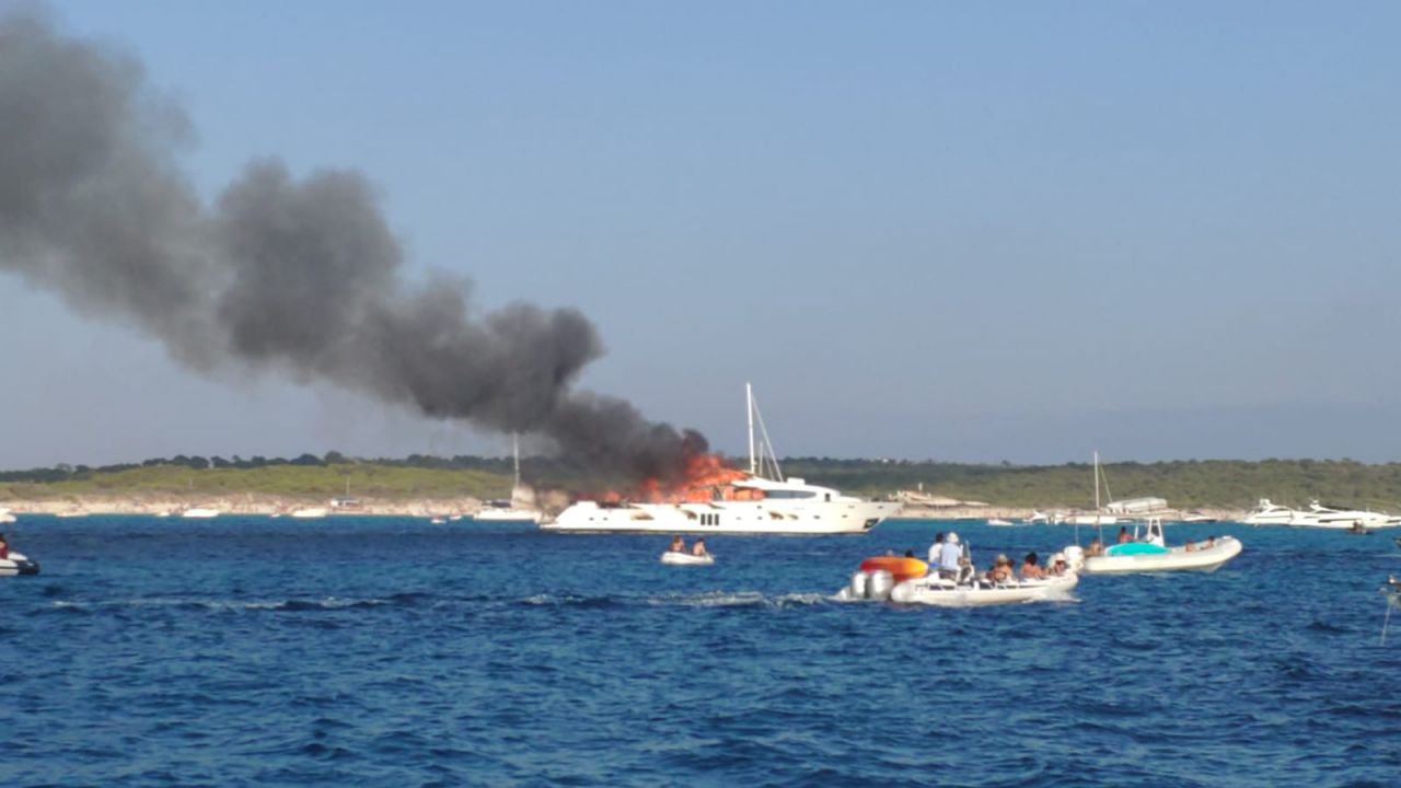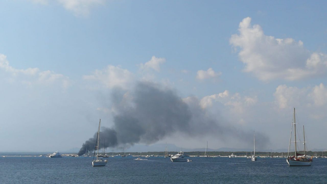 Yate ardiendo frente a Es Trenc agosto 2019