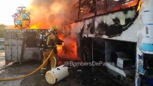 Un incendio declarado en un solar del Camí de Son Palou (una travesía del Camí de Son Tous) ha calcinado un autocar y un contenedor lleno de neumáticos. 864