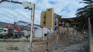 Este miércoles comenzaron los trabajos de demolición del histórico edificio de Muebles Gali en el polígono industrial de Maó. 571