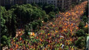Cientos de miles de personas -según la Guardia Urbana, un millón- han participado este lunes en la Diada más reivindicativa en el centro de Barcelona. Al grito de «Indepèndencia» y «Votarem», los asistentes han escenificado el pulso que mantiene el independentismo catalán con el Estado y Justicia. 259