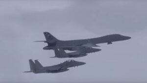 Bombarderos B1 estadounidenses vuelan en límite del espacio aéreo norcoreano. Los aviones han despegado de la base aérea de la isla de Guam amenazada poe Kim Jong Un. El B1 es un bombardero táctico de largo alcance que puede portar armas convencionales así como explosivos nucleares. Cazas F-15 de la base norteamericana de Okinawa (Japón) […]