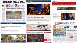 Cataluña es portada este domingo en los principales medios de comunicación internacionales, que resaltan el «golpe audaz» o «decidido» del Ejecutivo español al proponer el cese del secesionista Gobierno regional catalán, así como la «escalada de la crisis». 304