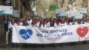 Miles de personas se han manifestado este domingo en Palma en contra del requisito del catalán en IbSalut, una protesta que ha sido convocada por el movimiento ciudadano ‘Mos Movem’ con la intención de «concienciar a la gente del problema». 1.385