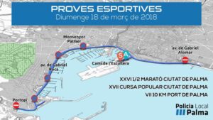 La Policía Local de Palma ha informado de las restricciones de tráfico que se producirán este domingo entre las 9:30 y las 13:30 horas con motivo de las competiciones deportivas planificadas. 503