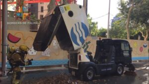 Los Bomberos de Palma han extinguido a las 08.15 horas de este sábado el fuego de una barredora de Emaya frente a la comisaría de Policía del Paseo de Mallorca. 144