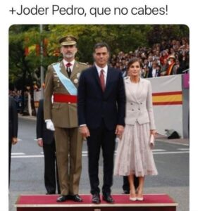 La escena de Pedro Sánchez este viernes en el acto oficial de la recepción de los Reyes con motivo de la fiesta nacional ha provocado multitud de memes que, una vez más, demuestran la creatividad de los internautas 1.473