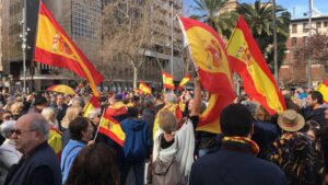 Centenares de personas se han concentrado en la Plaza de España de Palma coincidiendo con la manifestación convocada en la Plaza Colón de Madrid por PP y C’s -y apoyada por VOX- en contra de la política de Pedro Sánchez y solicitando elecciones generales. 890
