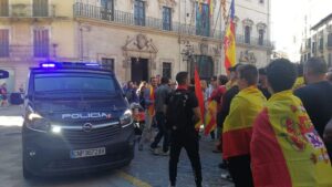 Alrededor de 400 personas, convocadas por la asociación Foro Baleares con el apoyo de sindicatos y agrupaciones de la Policía y la Guardia Civil, se han manifestado esta mañana en Palma para expresar su respaldo al trabajo que las fuerzas de seguridad del Estado llevan a cabo en Cataluña. 630