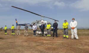 El Ayuntamiento de Palma, a través del servicio de prevención de plagas, ha realizado este viernes desde las 08.00 horas la primera aplicación aérea con helicóptero de producto larvicida para evitar la proliferación de mosquito común en la Playa de Palma y en el Pla de Sant Jordi. 250