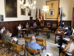 El salón de actos del Ayuntamiento de Santanyí ha acogido hoy la primera reunión de la mesa de seguimiento del coronavirus Covid-19 del municipio de Santanyí. 308