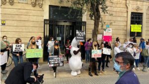 Las Asociaciones de Parques de Ocio Infantil y los feriantes de Mallorca se han concentrado este martes en la calle de Palau Reial, coincidiendo con el pleno del Parlament, para exigir que les dejen reabrir sus negocios, cerrados por la pandemia. 177