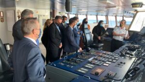 El buque Villa de Tazacorte, de Naviera Armas Trasmediterránea ha atracado, este martes por la mañana en el Puerto de Santa Cruz de La Palma, donde ha sido presentado ante las autoridades insulares y los medios de comunicación por los principales directivos de la primera naviera española. 177