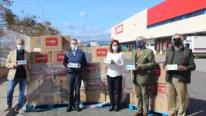 El grupo Eroski ha hecho entrega este martes de 118.900 mascarillas a varias organizaciones asistenciales y entidades de Mallorca, entre las que se encuentran, además del Govern autonómico y 12 ayuntamientos de la isla, Creu Roja, Càritas, Banco de Alimentos de Mallorca y Fundación Aldaba. 358