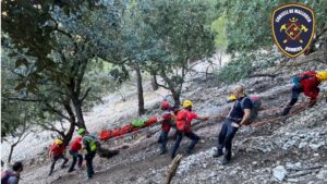 Los Bomberos de Mallorca rescataron el sábado a una mujer de 40 años con una posible fractura de la pierna derecha, en Can Boqueta, en el municipio mallorquín de Deià. 157