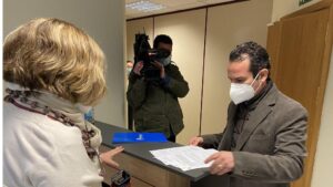 El secretario general del PP de Baleares, Toni Fuster, ha acudido este jueves a la Oficina de Prevención y Lucha contra la Corrupción para registrar la petición de su formación política consistente en promover una investigación en relación a la supuesta vacunación irregular de cargos políticos en las islas. 119