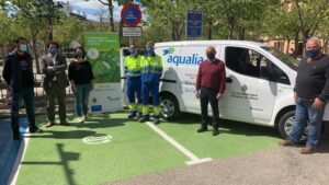 El Ayuntamiento de Muro y Aqualia han presentado este jueves el vehículo eléctrico que se ha incorporado a la flota del Servicio Municipal de Aguas. Se trata de una furgoneta Nissan 100 por cien eléctrica, con una autonomía de 250 kilómetros. 80