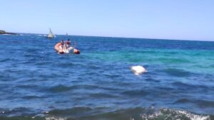 El cadáver de un cachalote ha aparecido este domingo en aguas de Es Carnatge ante el asombro de los ciudadanos que se encontraban en este espacio natural costero. 298