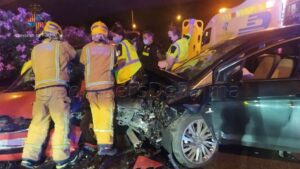 Dos personas han resultado heridas en la madrugada de este sábado en un accidente de tráfico ocurrido en la Vía de Cintura, a la altura de sa Teulera, sentido Andratx, cuando un vehículo que circulaba en contra dirección ha impactado con otro. 679